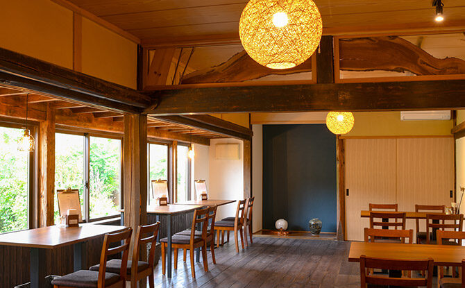 築100年以上の古い農家をリノベーションした「古民家Café imoca」。柱や梁、欄間など当時の面影を残した店内は、どこか懐かしい空気が漂う。