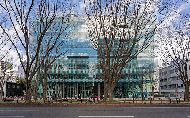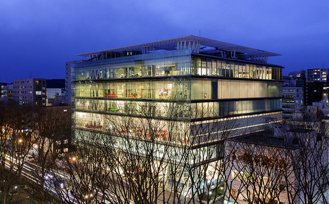 美しいケヤキ並木が続く定禅寺通の沿道やグリーンベルトを歩くと、目の前に全面ガラス張りの未来的な建築物と遭遇。青空や流れる雲を鏡面に映しながら、木漏れ日の光を反射してキラキラと輝く姿に思わず見惚れてしまうだろう。