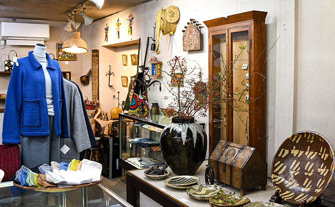 漆器や焼き物、木工、鋳物、郷土玩具など、全国各地の工人や作家が手がける民芸品が取り揃えられており、思わず目移りしそう。海外の雑貨もバラエティー豊かに並んでおり、手に取れば愛着が湧きそうな逸品ばかり。染色から織りまで全て手作業で行う岩手のホームスパンや、広瀬川の砂を原料にした仙台市秋保の「海馬ガラス工房」のグラスといった、東北の名品も見逃せない。お店を訪れるタイミングによって品揃えが異なるため、足繁く通ってお気に入りを探したい。