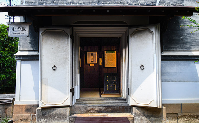 堀切家が大庄屋を務めていた頃から使われていた座敷蔵の「中の蔵」。内部を見学することができ、1階中央には重厚な耐火金庫が備え付けてある。2階は書庫として使われ、「詠帰亭」扁額(複製したもの)や大福帳(金融業の名残)など、貴重な資料を展示している。