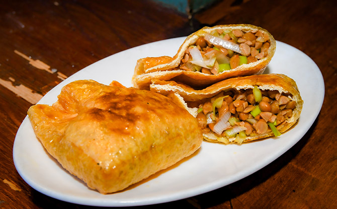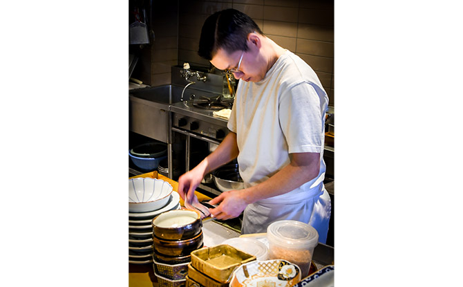 酒に合う定番おつまみの「きつね納豆」(550円)も欠かせない。岩橋さん馴染みの老舗豆腐店から仕入れる油揚げは、焼くとこんがり美しい焼き色に仕上がり、香ばしさもアップ。中に入れる納豆は、土湯温泉にオープンした納豆製造施設「おららの温泉納豆ラボ」で手がける温泉納豆を使用する。福島県産の大豆品種タチナガハを使ったこの納豆は、比較的粒が大きく風味豊かなのが特徴だが、あえて細かく砕いて食べやすくするのが岩橋さん流。オーダー時に、どちらが好みかを伝えておくといいだろう。