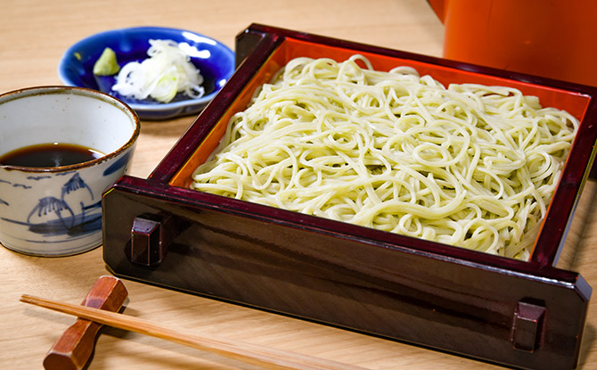 この店で提供される「せいろ」(850円)をオーダーすると、ほのかな鶯色をしているのに気づくだろう。これは、蕎麦の実の黒い外皮の下にある甘皮を残して製粉したものを使用しているため。きりっと当たりの強い濃い目のつゆに浸しても、なおも香り立つ鮮烈な青々しい風味。この味わいを守るために、製造工程はもちろん鮮度を保つ貯蔵にまで徹底している仕入れ先との連絡を大事にしているという。